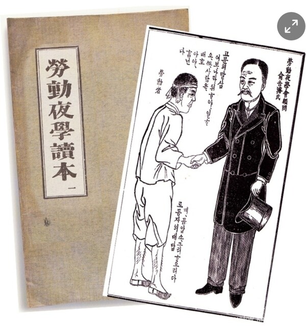 이런 점은 한국에서 처음 야학을 시작한 윤치호때부터 이미 예견된 것이었다. 윤치호가 1908년에 펴낸 ‘노동야학 독본’의 삽화를 보면 서양식 복장을 한 유길준이 누추한 복장의 노동자에게 하는 말이 나온다.