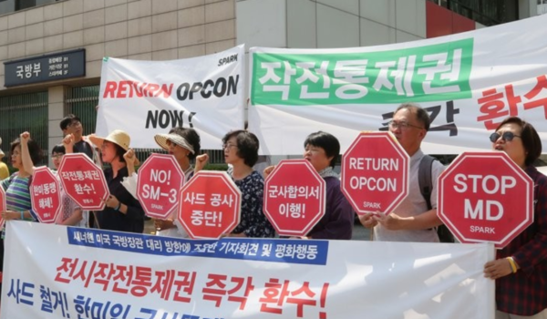 박근혜 정부 때인 2014년 10월23일 한미 국방부는 제46차 안보협의회(SCM)에서 ‘조건에 기초한 전시작전통제권 전환’의 세 가지 조건을 합의했다. ① 전시작전통제권 전환 이후 한국군이 한미연합방위를 주도할 수 있는 핵심 군사능력을 확보하고 미국은 보완·지속 능력을 제공하는 것, ② 북핵·미사일 위협에 대해 한국군은 초기 필수 대응능력을 구비하고 미국은 확장억제 수단과 전략자산을 제공, 운용하는 것, ③ 안정적인 전시작전권 전환에 부합하는 한반도와 지역의 안보환경을 관리하는 것이었다.